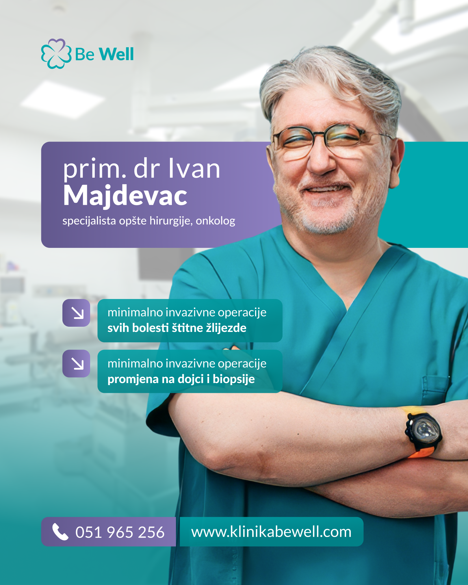 Specijalna bolnica Be Well pruža specijalističke preglede i dijagnostiku, minimalno invazivne procedure i kompletnu laboratorijsku analizu u prostoru u kojem se osjećate sigurno, opušteno i zbrinuto.